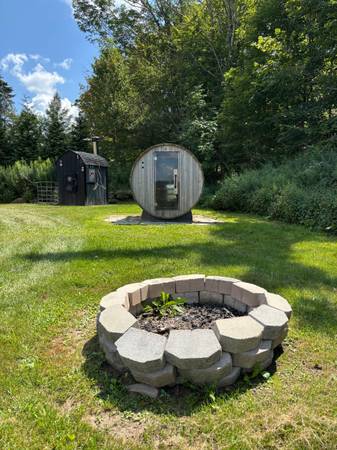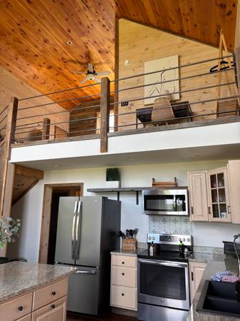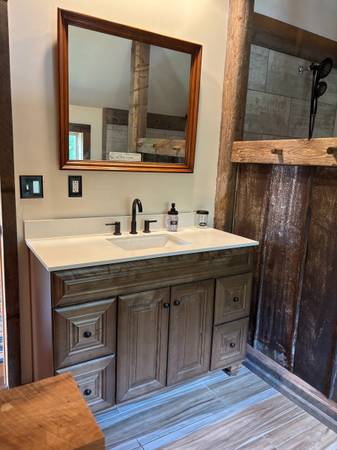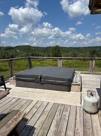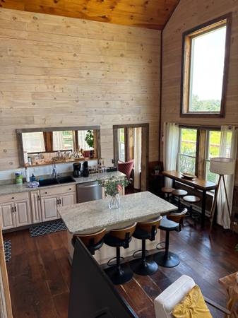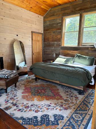 Rent to Own Our stunning modern-farmhouse retreat on 10.24 private acres in the heart of the Pocono Mountains. Built in 2021, this 3-bedroom, 2.5-bath home blends rustic charm with modern comfort and is perfect for a family getaway. Step inside to an open floor plan with cathedral ceilings, tongue-and-groove wood accents, and abundant natural light. The chef's kitchen features granite countertops, stainless steel appliances, and a large center island. Enjoy peaceful views from the wrap-around deck or relax in the outdoor hot tub surrounded by nature. The property includes a spacious 4,000 sq ft barn and a guest cottage, offering versatile space for hobbies, storage, or family visits. Thoughtful details, reclaimed wood finishes, and quality craftsmanship make this home truly one of a kind. Conveniently located near top Pocono attractions Lake Wallenpaupack, Promised Land State Park, Camelback Resort, Kalahari Waterpark, and more. Only 2 hours from NYC & Philly!