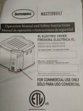 For your consideration is a Masterbuilt XL Electric Fryer. Model # MB23012418. Only used once. Very clean. Excellent condition. Has all parts and manual as pictured.