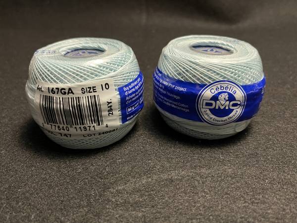 Cotton Thread (Cebelia DMC) Quantity: 2 Size: 10 Color: Blue # 747 (Sea Mist Blue) Weight: 50g 284 yards 100% double mercerized cotton Made in France Smoke Free Home I can also ship them