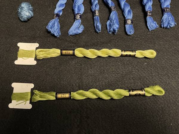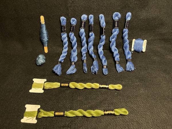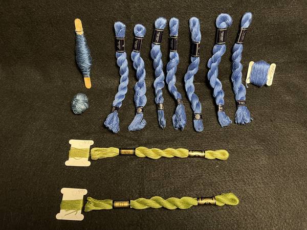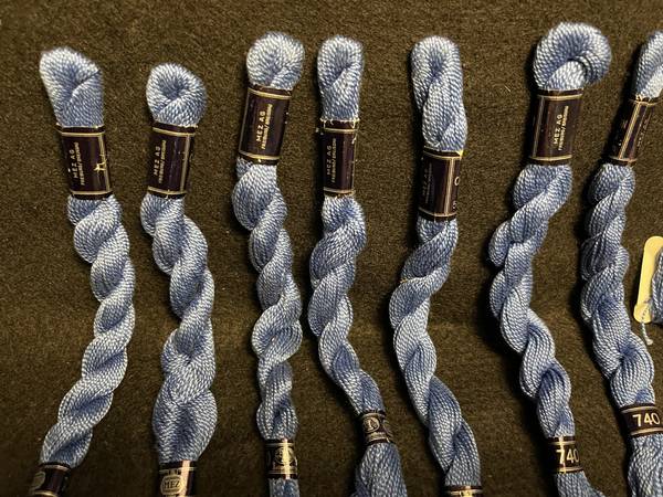 Green DMC Pearl Cotton Made in France (2) Full and (2) partials Blue MEZ Pearl Cotton Made in Germany (7) Full and (3) partials Smoke Free Home Shipping Available