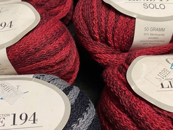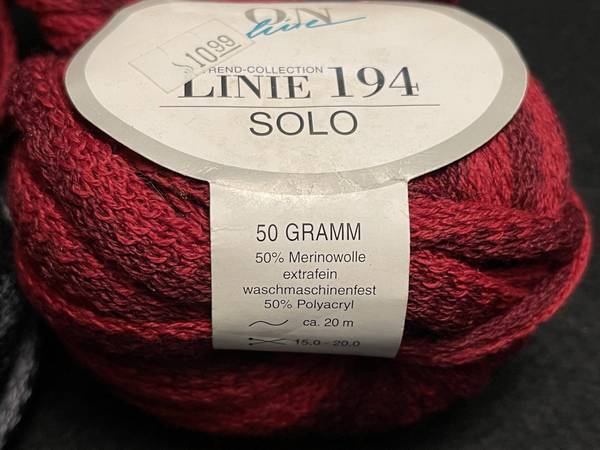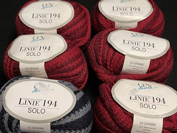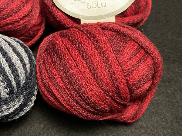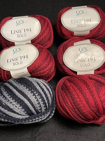 Linie 194 Solo Yarn (5) skeins RED (1) skein Black/Gray 50% Superwash Merino Wool and 50% Acrylic Weight - Each skein is 50 grams Smoke Free Home I can also ship them
