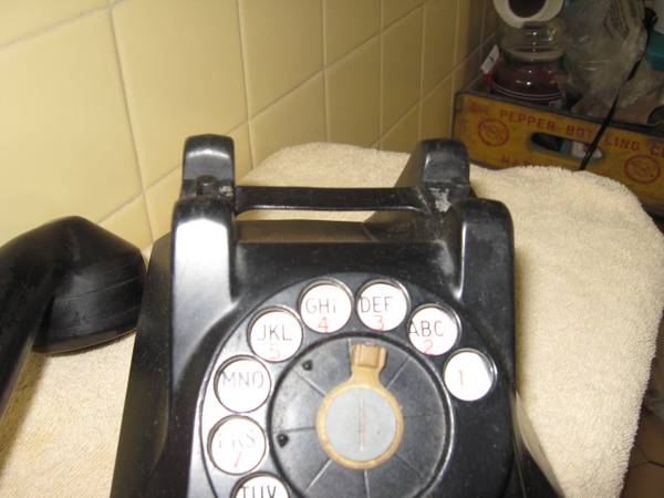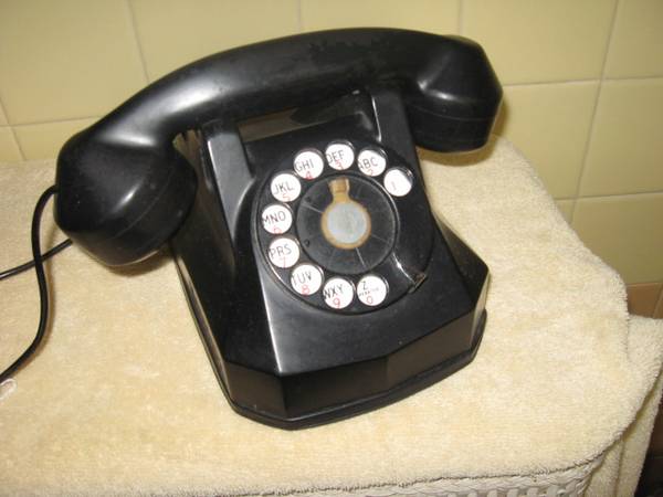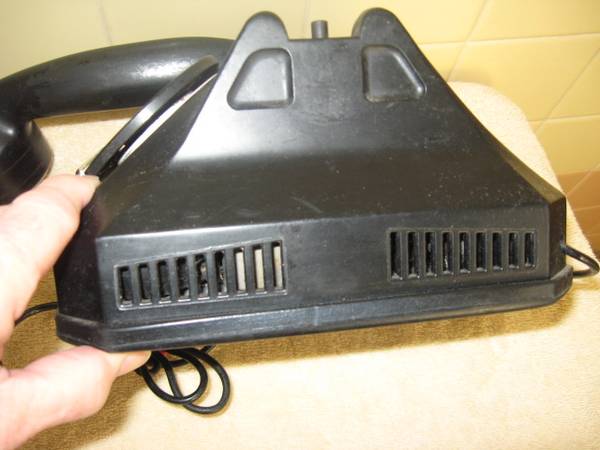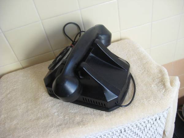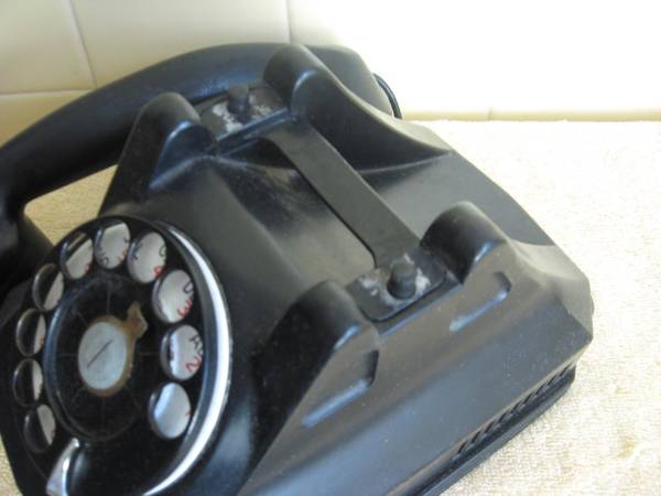 Offering a neat ANTIQUE BLACK CRADLE ROTARY TELEPHONE, CA 1930, made by the Automatic Electric Co. of Chicago, model "Monophone". Scarce brand and unusual style/shape. Straight cord - prior to coiled line.