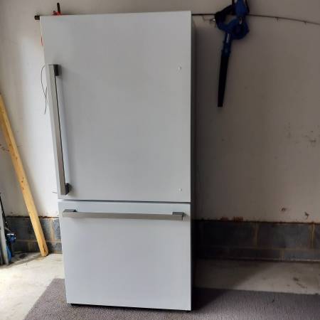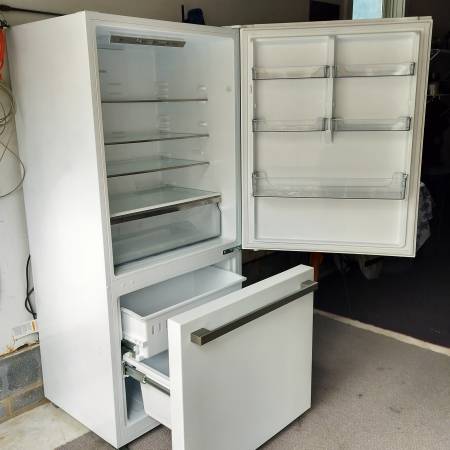 Counter depth white 17.6 cu. In fridge with bottom drawer freezer.