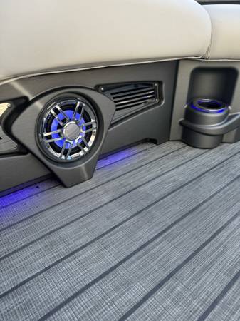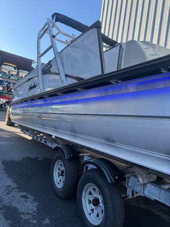 Deco dock lights, Full wrap around Windsheild with dual fiberglass consoles,side impact keels, solid bottom keels, 6 high performance lifting fins, patio pad rear deck extension - ideal for paddle boards, swim mats, optional diving board, detailed seasonally by dealership, maintained with open checkbook. Consignment unit, asking price with trailer