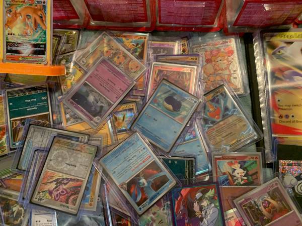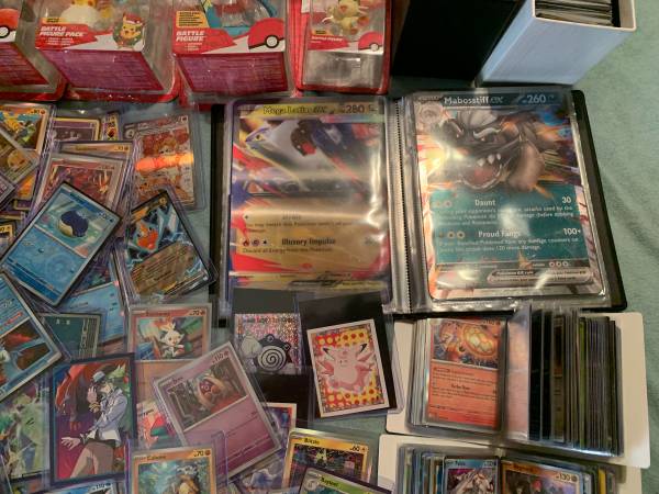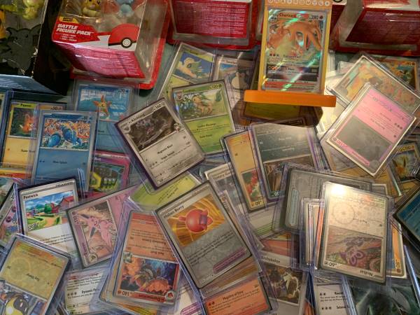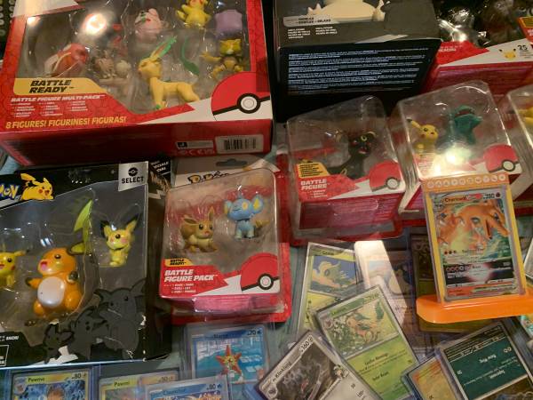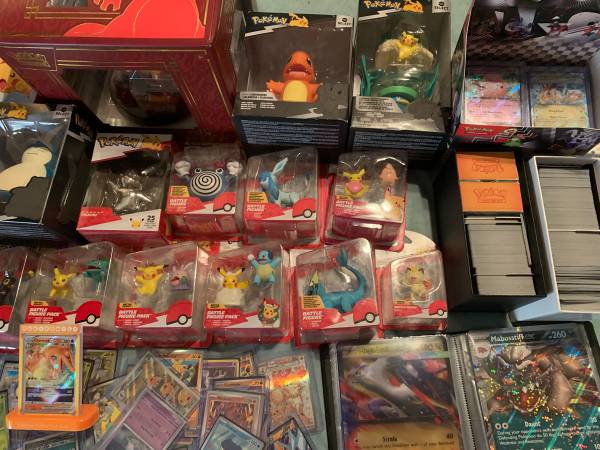 FOR SALE. POKEMON Collection of over a thousand cards, about 400 Holo cards plus 18 different new figures $1300 FOR ALL