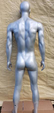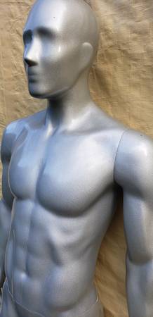This is a beautiful $425.00 Commercial Grade Male Silver Mannequin, very well solid made that can be used to display clothing or have posing as a conversation piece in your mancave ,game room etc.....