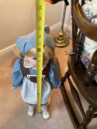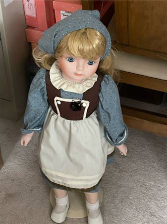 Porcelain doll with stand She beautiful! Lovely blonde curly hair. 27”H Text: 570- eight9five1eight5seven If it’s posted it’s available Cash and pickup