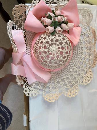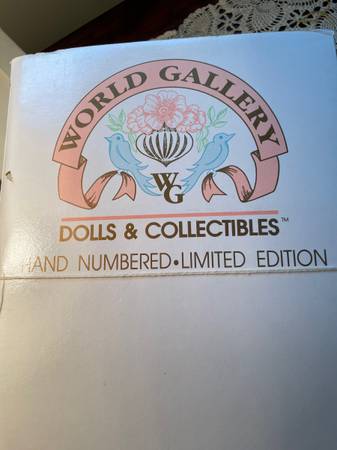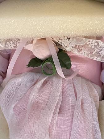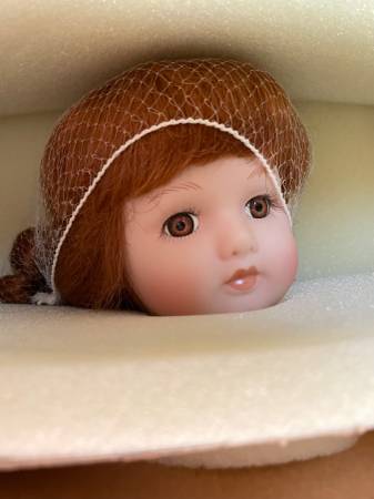 Fine Porcelain doll, her name is Penelope. With long real eyelashes, beautiful hat, and flowers on her pink dress, sign by the artist on back of her neck. All over porcelain. Makes a wonderful gift.