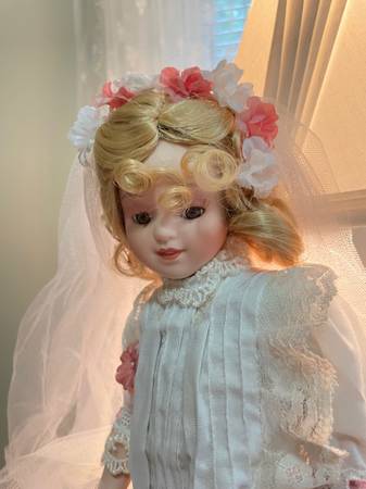 Beautiful ! Bride with lace and embroidery dress And very long vail, just lovely. In original box Makes a wonderful gift for any age, or for the bride to be. Fine porcelain. A must see Text:...