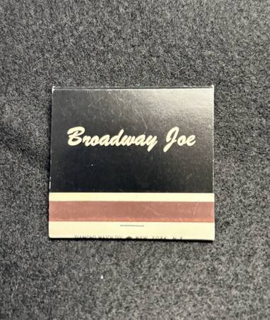 Design: Features the classic "Broadway Joe Steakhouse" logo and address, perfectly preserved without creasing or wear.