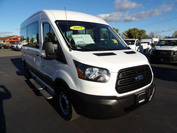 Trim: T-350 5-Passenger van Mileage: 61k miles Exterior Color: Oxford White Interior Color: Pewter Engine: 3.7L 6 Cylinders Drive: rwd Transmission: Automatic VIN: 1FDZX2CM3KKB60163 Seller Comments: Our fantastic 2019 Ford Transit XL Medium Roof Regular Wheelbase Passenger Van in Oxford White has been modified to be perfect for wheelchair transportation.Powered by a 3.7 Liter V6 generating 275hp paired with a 6 Speed Automatic transmission to keep you on the move with confidence.This Rear Wheel Drive van is also impressively maneuverable on the road and in parking lots, and it has a bold and modern design you'll love.Halogen headlamps, power mirrors, a sliding passenger-side door, running boards, and swingout rear cargo doors add convenient functionality. Thoughtfully designed for premium people moving, our XL cabin keeps you feeling fresh with supportive seats, a tilt/telescoping steering wheel, front/rear air conditioning, power accessories, remote keyless entry, an AM/FM stereo system, and 12V power outlets. You'll drive confidently knowing that Ford keeps you and your passengers safe with smart features such as a rearview camera, AdvanceTrac with Roll Stability Control, tire-pressure monitoring, hill-start assistance, ABS, and multiple airbags.Ready to tackle your busiest days, our Transit XL will make an excellent partner for you! Save this Page and Call for Availability.We Know You Will Enjoy Your Test Drive Towards Ownership!
