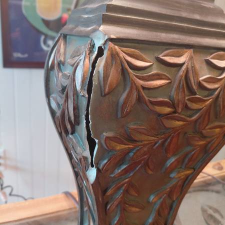 Pair of charming lamps with leaf design in French Country Style. One lamp has a crack but still functions perfectly. Get creative and fix it with putty, or simply enjoy it as-is!