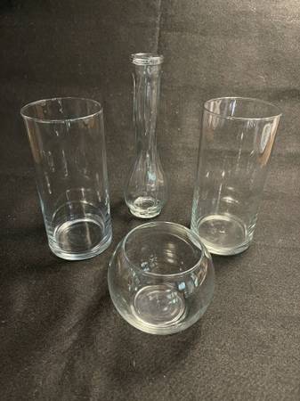 Set of (4) vases Like New condition Can be used around the home, for wedding arrangements, etc. Smoke Free Home