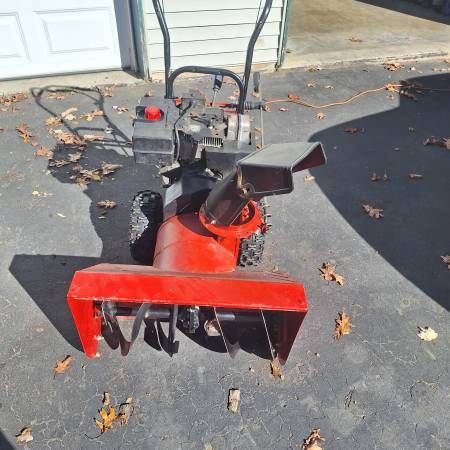 Craftsman snow thrower 25+ years old. Still operates just tired. Auger break is missing so it will turn at all times. I used it last year just moving on to something newer. It will need TLC if you...