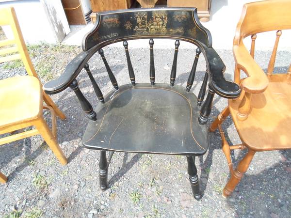 oak chair, $5.00, carved chair, $10.00, 2 arm chairs, $5.00 each,solid white/ wood chair, $5.00 , arm chair, $5.00. nice arm chair, $5.00, arm chair, $10.00, vintage arm chair, $5.00, call