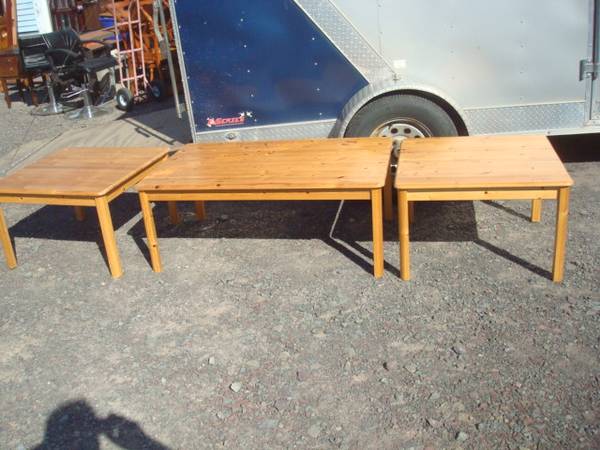 nice pine coffee table, 48 x 30 x 20, 2 matching end tables, 30 x 30 x 19 , 3 for $30.00, call