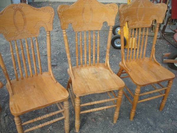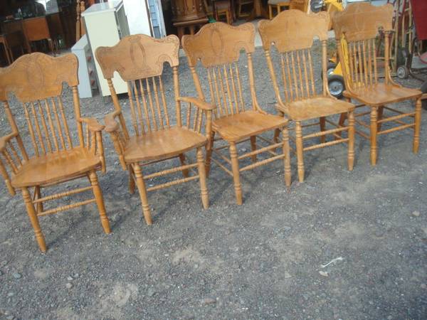 5 oak chairs, 2 arm, 3 side, 5 for $30.00, call