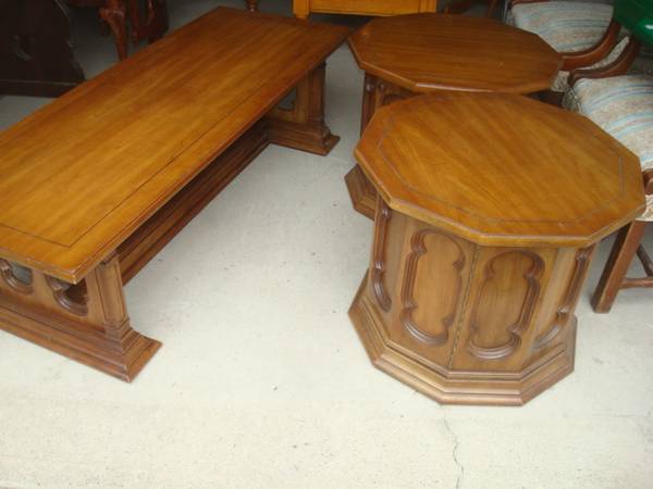3 pc coffee table, 60 x 27 x 16 w/ 2 end tables, 24 across x 24 h, set for $30.00, call