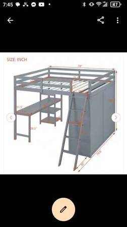 For sale: New in box - Full size bunk bed (500lb max). Brand new, comes in (2) unopened boxes. Purchased from Home Depot but no longer needed.