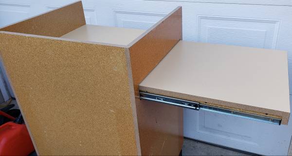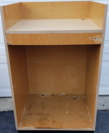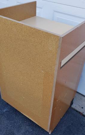 here we have a podium in very nice condition that can be used for cash register ,has a built in slide out table top to add a credit card machine ,greeting candy ,menu etc....has pre-holes on the inside to add pegs to install shelves if desire. Has round hole on top and bottom to accommodate the register eclectic plug to come out from the bottom to plug into wall ,also has 4 wheels to be able to roll it easily from place to place.... this is solid and ready for business all measurement are as pictured ...message me if you're ready to buy it and pick it up on the same day or the next. ASKING $175 or best offer.... if its listed then its available thank you