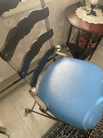 Excellent chair for any room. The frame is iron with wood ladder back, the seat is vinyl, Must see. Text: 570-eights9five-1eight5seven If is posted it’s available. Cash and pickup