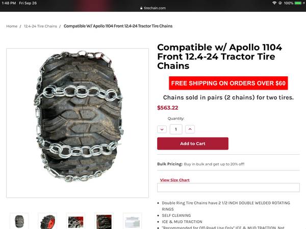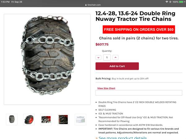 Only used two times. Suitable for mid-sized tractor. Most likely 12.4 x 24 or similar. Links easily added or removed to suit your needs. Located 3 miles north of Honesdale. Calls preferred. See...