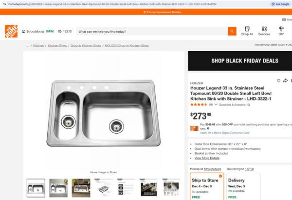 The hole you see on the left is from our soap dispenser, which we're keeping, along with the Kohler faucet. So you are getting only the sink - nothing else. No drains or strainers. But still, this is a smokin' deal! This sink is currently available at Home Depot and many other places for over $270.