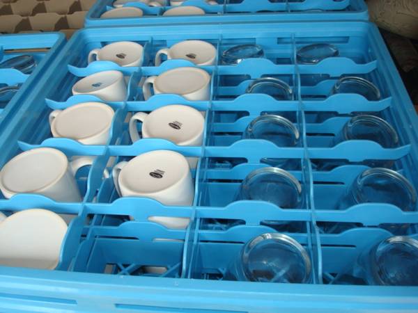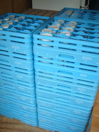 16 racks glasses,20 per rack, $5.00 per rack, all, $40.00/ 2 racks coffee mugs, 20 per rack, $5.00 per rack,, all new, call