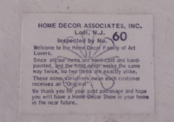 Vintage 1977 Original Wall Art by Home Decor Associates, Inc. Lodi...