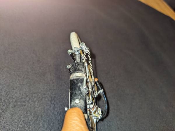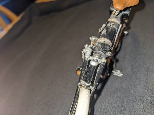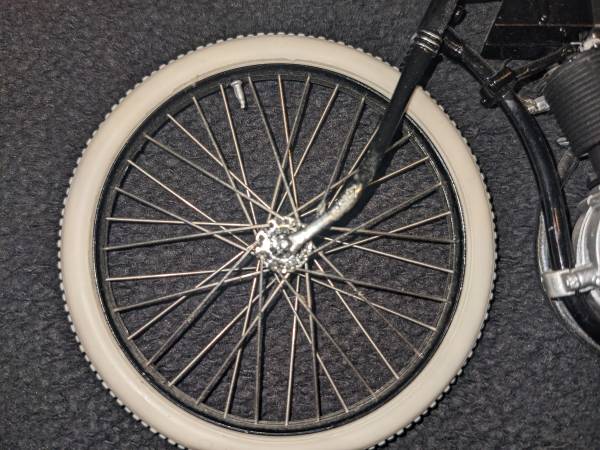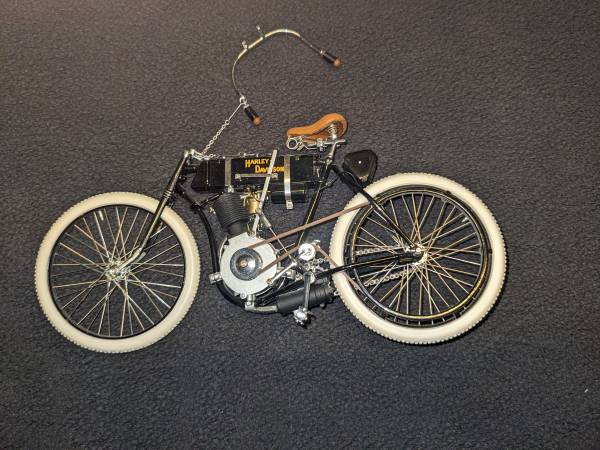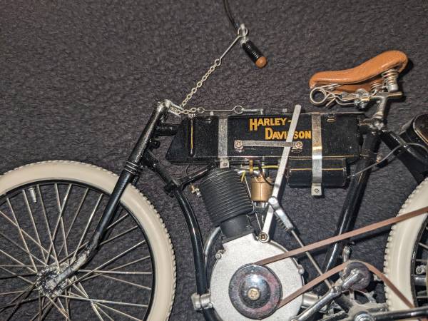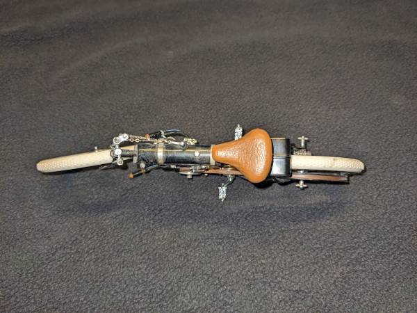 Needs a steady hand and the right glue for repair. handlebars separated from bike as well as one side of front axle. Also this display is missing the kickstand that held the bike up in the air. I believe it was just a small plastic piece separate from the bike. Again this item needs repair . It comes with the diorama and the bike as you see all the parts included.