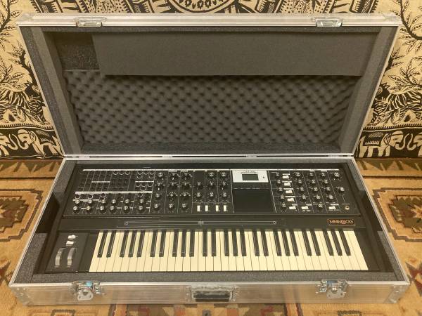 Here is a Moog Minimoog Voyager XL analog synthesizer in excellent condition and perfect working order. This is the rare limited edition black (non-tolex) version custom built by Moog. Included is the original Moog factory hard case, two new replacement keys, and power cable.