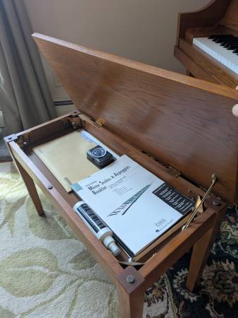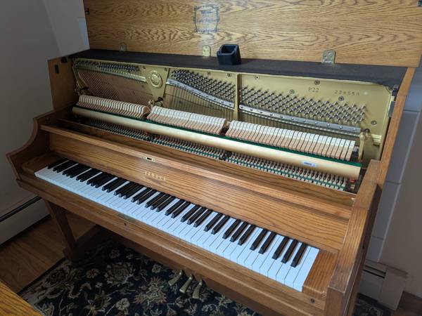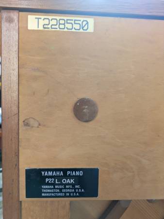 For sale: Yamaha P22 Piano, in Oak Finish. Made in Thomaston, GA, USA in 1997. Comes with matching bench.