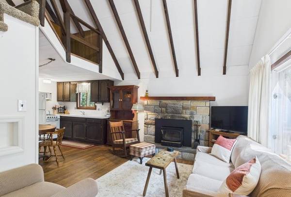 Welcome to this 3 bedroom, 1 bath Fully Furnished Chalet in the gated, amenity-filled community of Arrowhead Lakes. The living room has laminate hardwood looking floors, cathedral ceilings and a wood burning inset stone fireplace. Home has an eat-in kitchen. 2 bedrooms and a full bath finish off the main floor with a side door to outside. Upstairs has a large sleeping loft or 3rd bedroom. This area has storage under the eaves. Home has a programmable thermostat, a walk out basement with concrete floors, a stone driveway and a large front porch. Arrowhead Lake is a gated community with security, 3 heated swimming pools, 2 lakes for fishing/swimming and boating, tennis courts and bocce ball. Many of these activities have occurred over the years including bonfires, carnival, Zumba, water aerobics, swim team, potluck dinners/breakfast and summer camp.