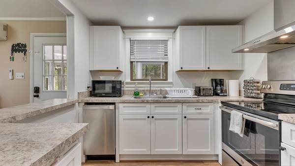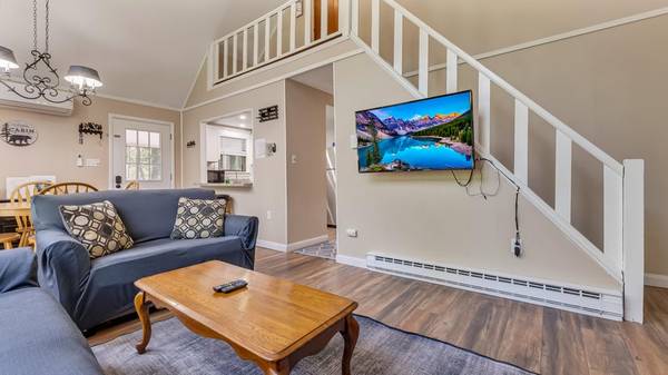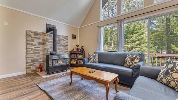 MODERN CHALET Features 3 Bedrooms, 2 Full recently renovated baths, 3 season porch & finished basement on .86 acre lot. Open Concept Entertaining where Kitchen, Dining and Living areas flow together w/the outdoor space. Living room has a wood burning free stand fireplace for cozy Winter Evenings! Full Basement finished w/ 2 great spaces for game room and/or media room, laundry and utility/storage areas. Enclosed Porch w/ Large Deck leads to outdoor firepit. SUPER Convenient to Pocono Attractions, minutes to JF/BB Ski areas, Pocono Raceway, Split Rock, Lake Harmony in STR friendly LOW DUES community of Camelot Forest! Public maintained roads, non-gated for easy access. Offers 2 lakes, nice beach & picnic area.