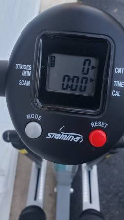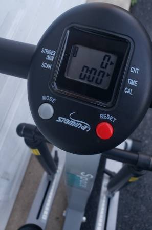 - Battery-operated electronic monitor tracks number of steps per minute, number of steps during the workout, workout time, and calories burned