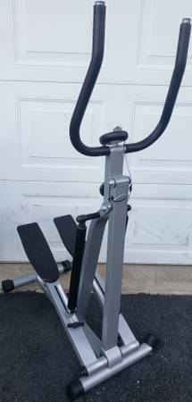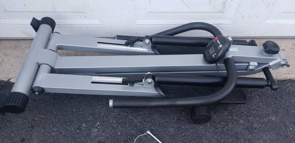 This is a BRAND NEW WITHOUT THE BOX AND NO MANUAL purchased put in storage Stamina Spacemate Compact Folding Stair Stepper Stepping Machine, not only gives a great low-impact, calorie burning, cardiovascular workout, but tones the calves, buttocks, thighs, and hips, too. The SpaceMate Folding Stepper gives a workout comparable to the larger more expensive stepper workouts, yet with the pull of a pin the SpaceMate Folding Stepper folds and rolls for easy storage and
