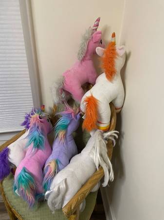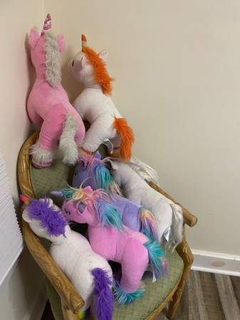 Lot of (6)gently used BUILD-A-BEAR Unicorns. Local pickup welcomed. Cash upon pickup. Please let me know if you need additional pictures?