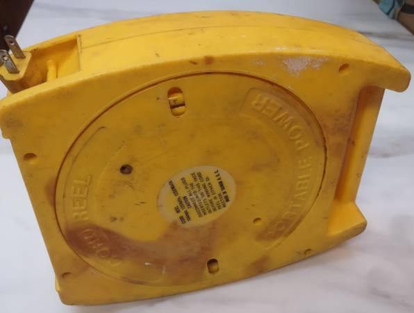 Portable 25 ft power cord reel with outlets 4 outlets max power 10 amps 1250 watts nice and compact. good working condition shipping available
