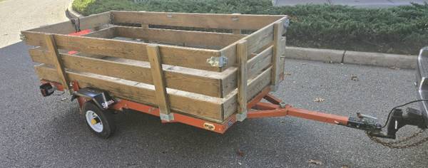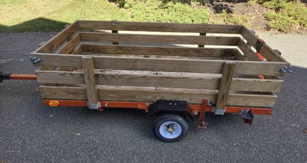 Folding 4 x 8 utility trailer with removable sides. Must transfer title into your name at local auto tag place with me if you purchase the trailer.