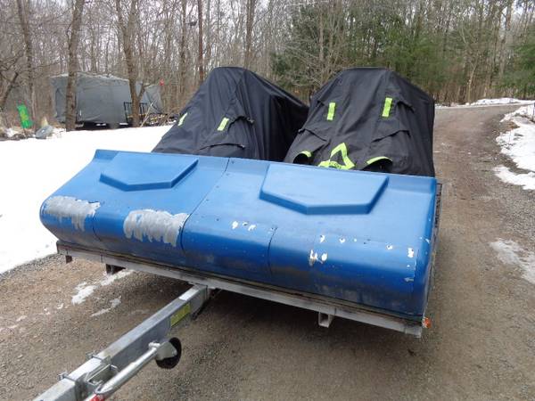 LOAD RITE TRAILER 10' LONG X 8' WIDE with SPLASH GUARD, SPARE TIRE AND 2 HOLD DOWN BARS AND 4 HOLD DOWN RINGS (Sleds sold, not included) Have Title Paper