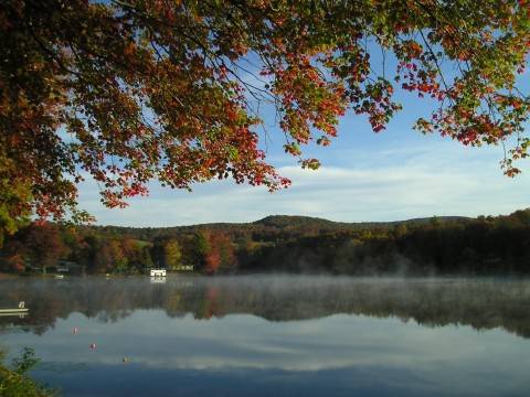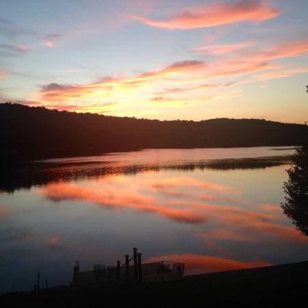 Enjoy a winter vacation: Awesome skiing at Elk Mt. (PA's best kept secret) and enjoy a winter retreat at my beautiful LAKEFRONT nestled amidst the Endless Mts. on Lake Idlewild, north of Scranton. An enclosed porch overlooks a private 70-acre lake. The house is only 2 miles from Elk Ski Mt.; you can see them making snow from the living room. Enjoy the spectacular mountain views, ice skating on the lake (fire pit and wood right there), cross country skiing, sledding, ice fishing, antiquing, and lots to do in nearby Scranton - Mohegan Sun Casino, Steamtown National Park, Lackawanna Coal Mine Tour, etc. Sleeps 5. Starter supplies in kitchen and all amenities: alarmed house with gas grill, firepit by the lake, broadband and wireless Internet connection with printer/fax/copier/scanner, washer/dryer, 2 cable flat screen TVs (one with surround sound). 2 DVD players with DVDs, VCR with videos, CD. A file folder is available with local restaurant info, activities in area, and local maps. Fully equipped kitchen; cell phones work. Flexible check-in and check-out. $110/night weekdays Monday-Thursday; $135/night weekends (Fri., Sat., Sun.); $820/week. Ask for inside pictures and website.